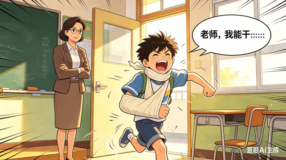 忆江南 · 殊路一 石膏板,托骨好盘筋。听讲天书魂欲断,忽闻劳动似腾云。课外最开心。二 虽骨裂,大事不推迟。算术作文生裂胆,一学英语断魂时。劳动得