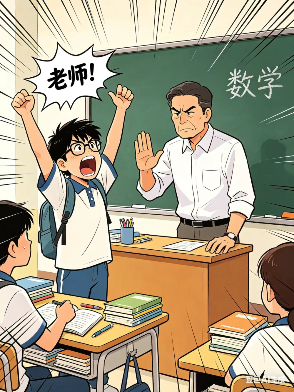 高声喊,几次又三番。只管自身心气顺,他人不顾扰全班。任性更刁蛮。 手机录,静影立标杆。翻遍书包糖果奉,要求抬手视频删。欲语吐声难。 课堂上