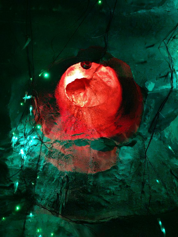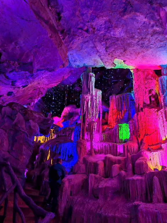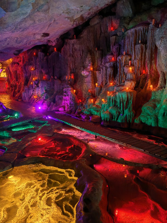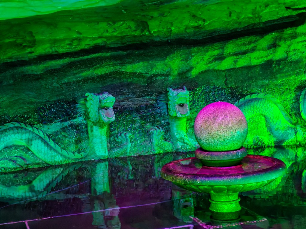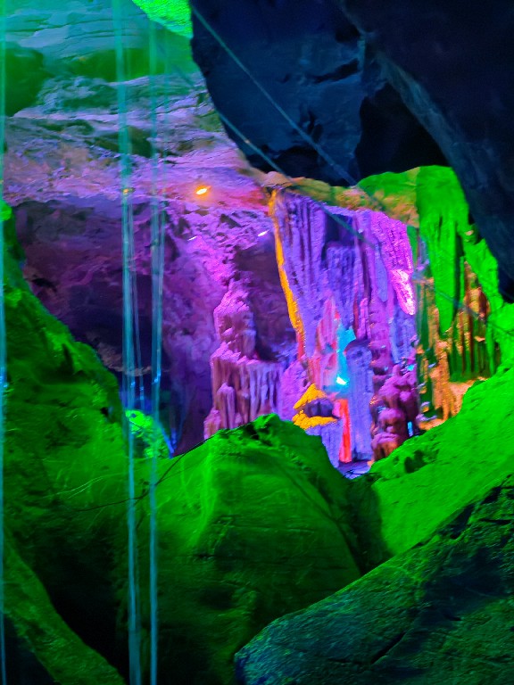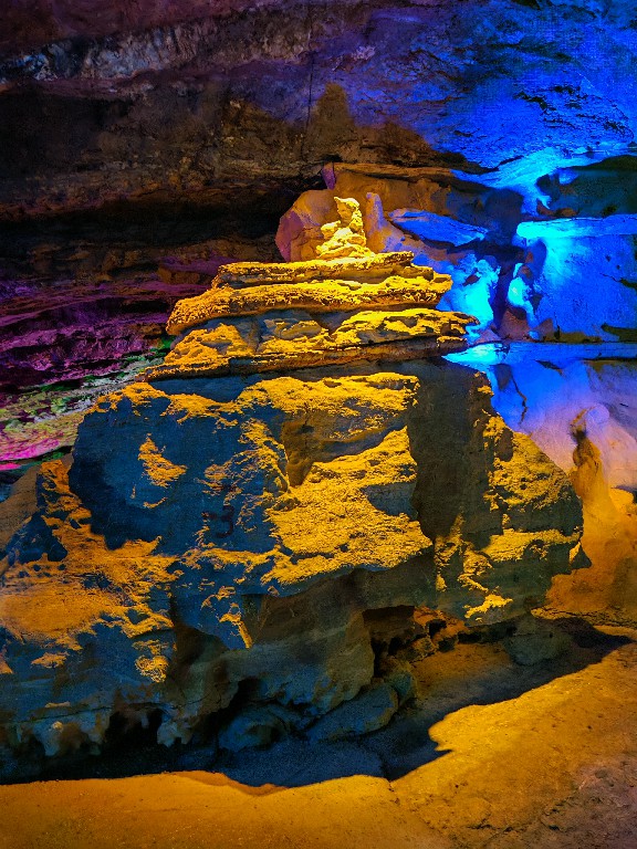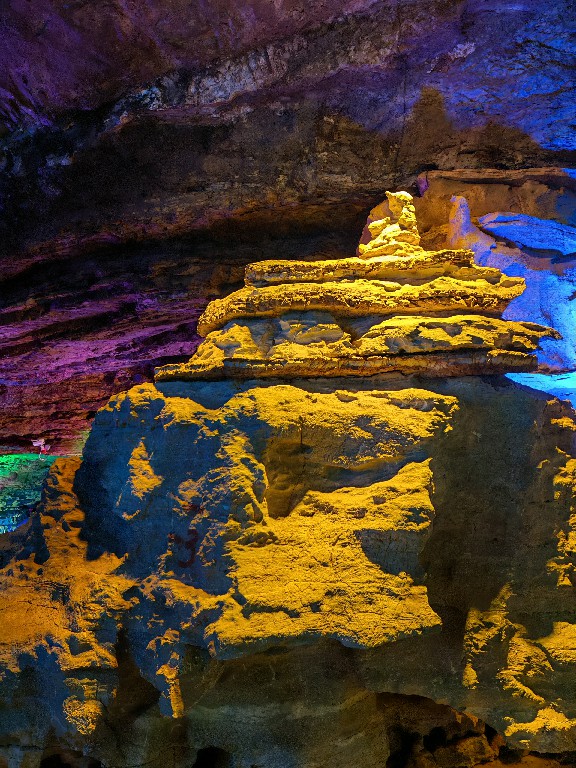 感慨天成微物,惊奇鬼斧神工。灵芝水母老仙翁,齐聚天锅古洞。