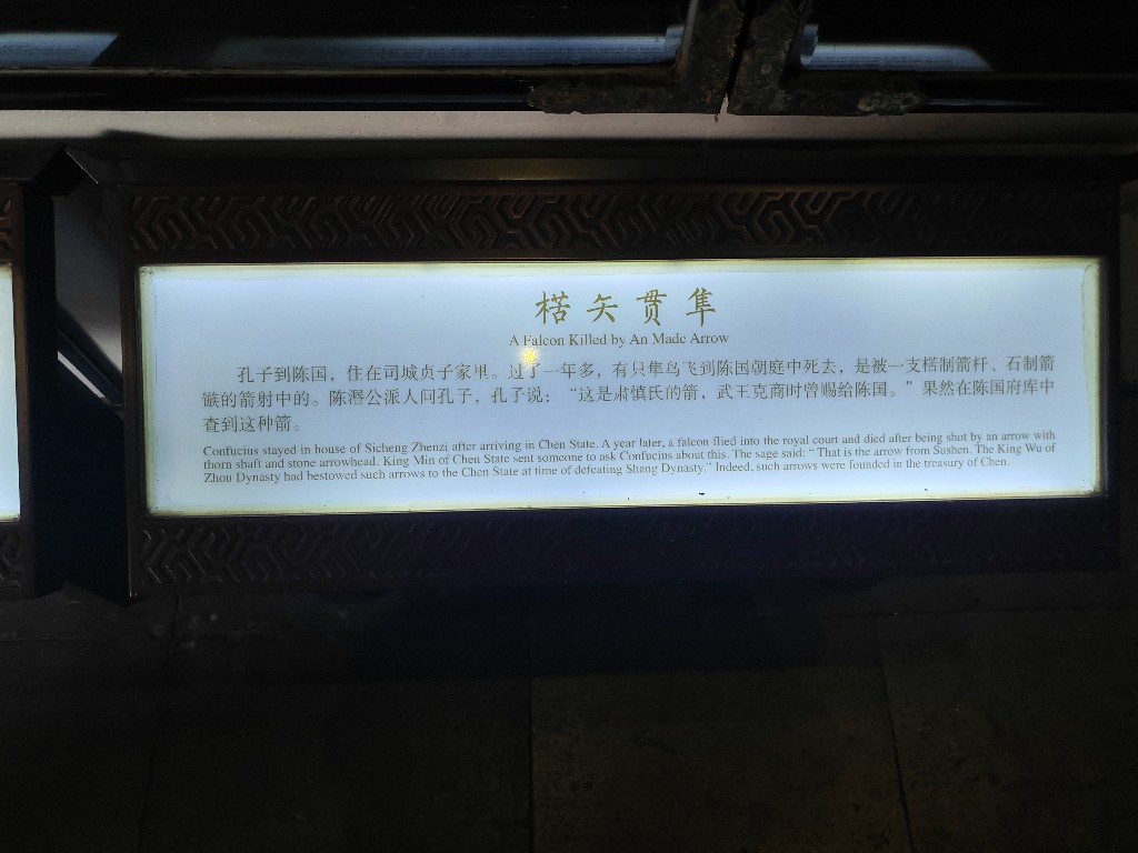 夫子庙更是清朝时江南贡院中心,是中国教育的活化石。从这里可以一窥当年的教育制度是如何选拔人才的,贡院即向朝廷贡献人才的地方。漫步其间,仿佛仍可听见昔日科举士子的纸笔沙沙、抱负翻涌。在大成殿四周的浮雕中,我最感兴趣的是一幅名为《楛矢贯隼》的壁画,“楛矢”是楛木作的箭,楛木是产在东北的树。孔子当年在陈国,有人拿着一支被不知名箭所射杀的隼来询问孔子,孔子当即认出是肃慎国那里的箭。史官在国库中一查,果如孔子所说。这说明现在东北和贝加尔湖一带在那时就是周之属国,向中原朝贡“楛矢”。因为《左传》中记载周天子说:“肃慎,吾北土也。”和这里记载互为印证。一支楛木箭,穿越千年,仍射中历史的靶心。